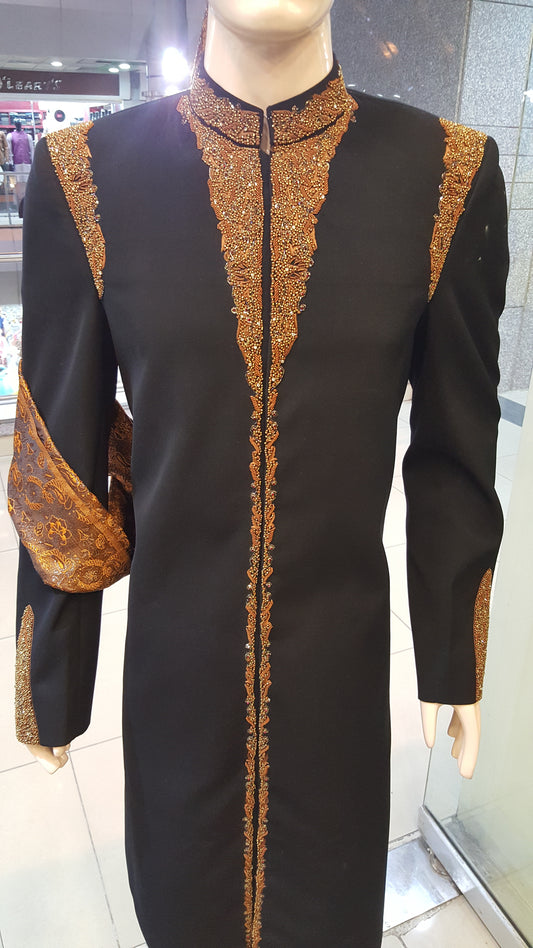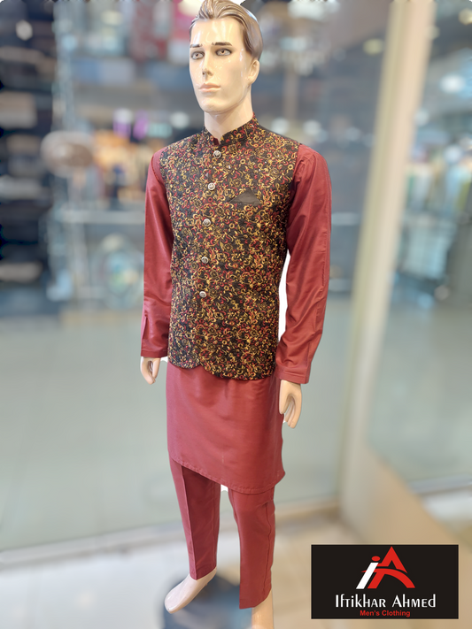 Balck with Multi Color Embroidery - Waist coat fabric Masoori
