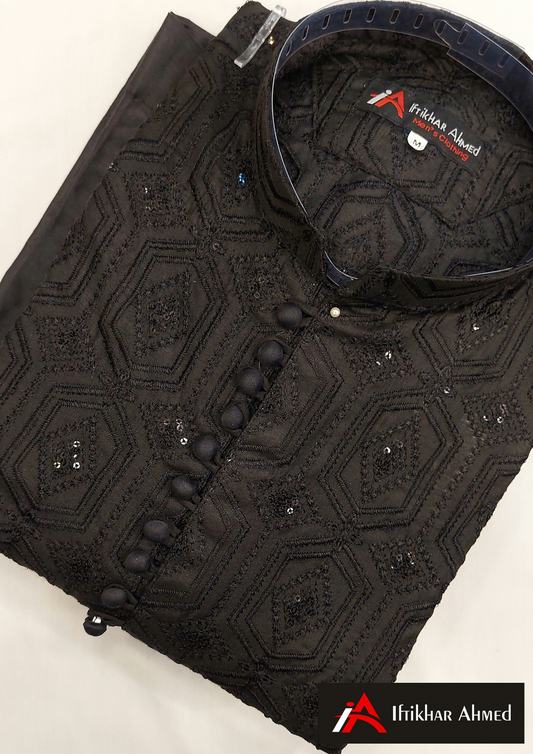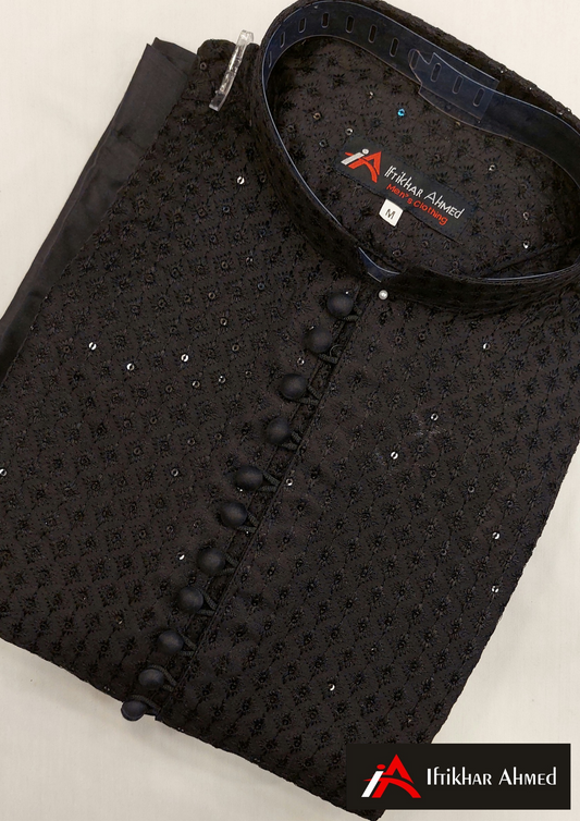 Black - Kurta Pajama - Masoori Sequence Work - Cotton Silk Fabric