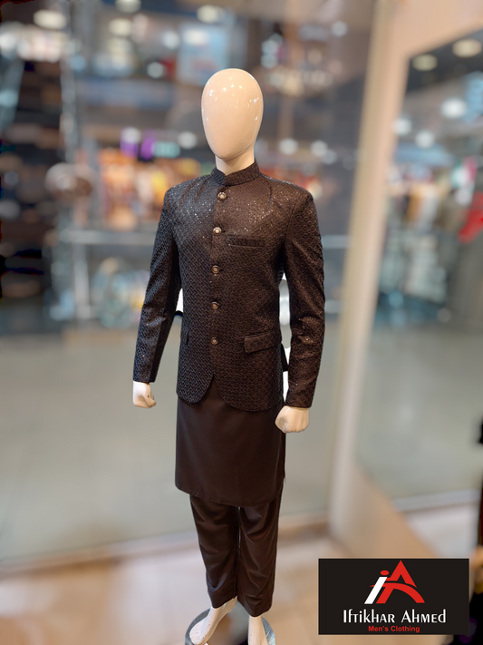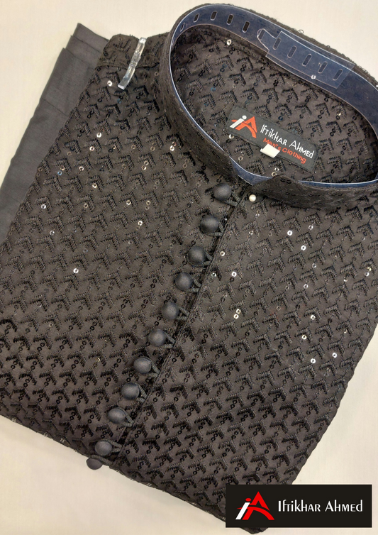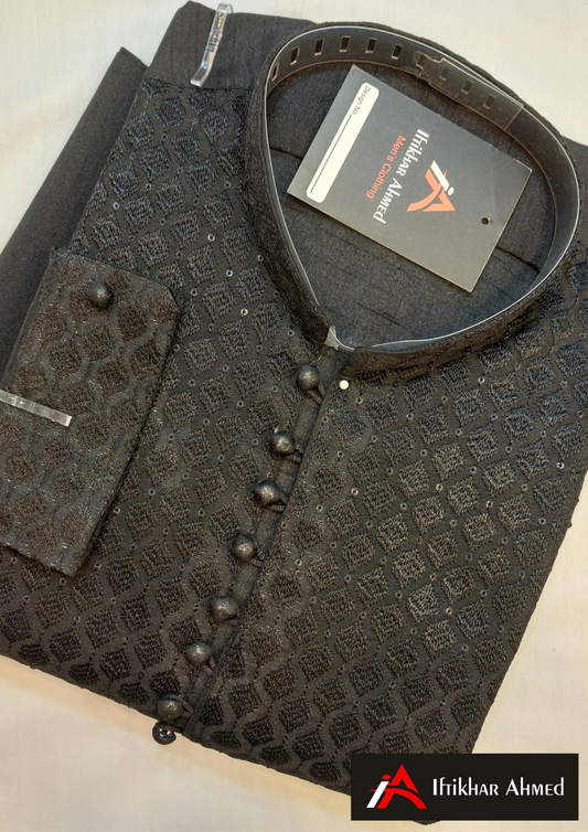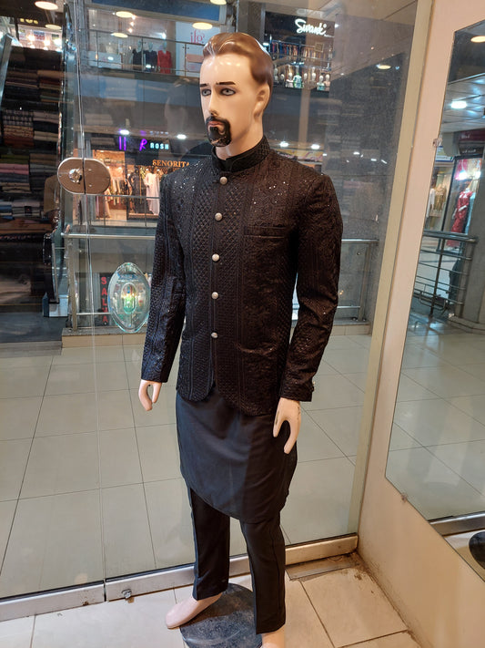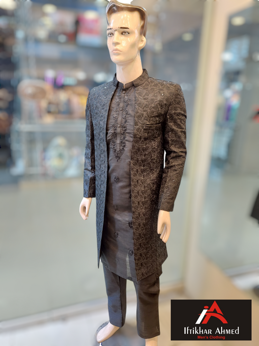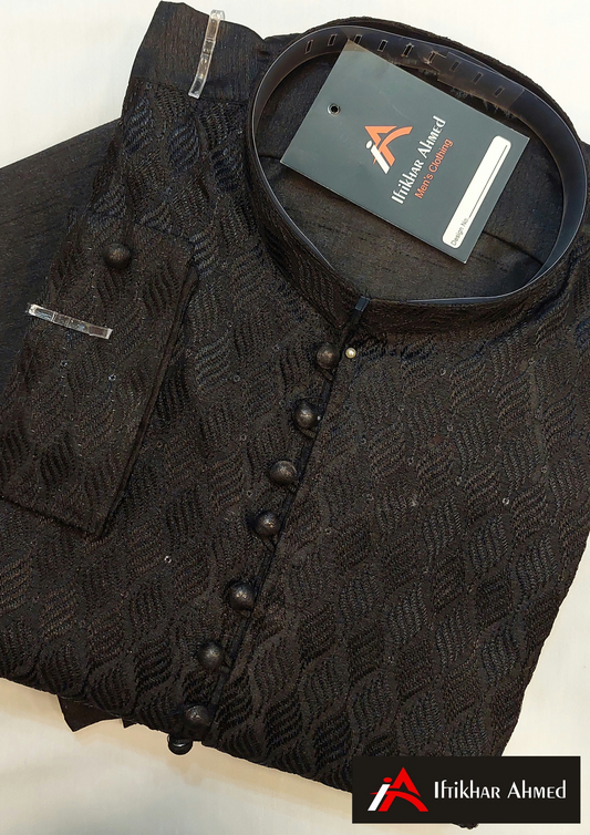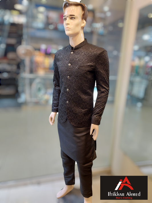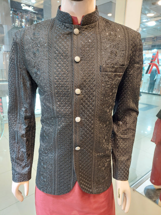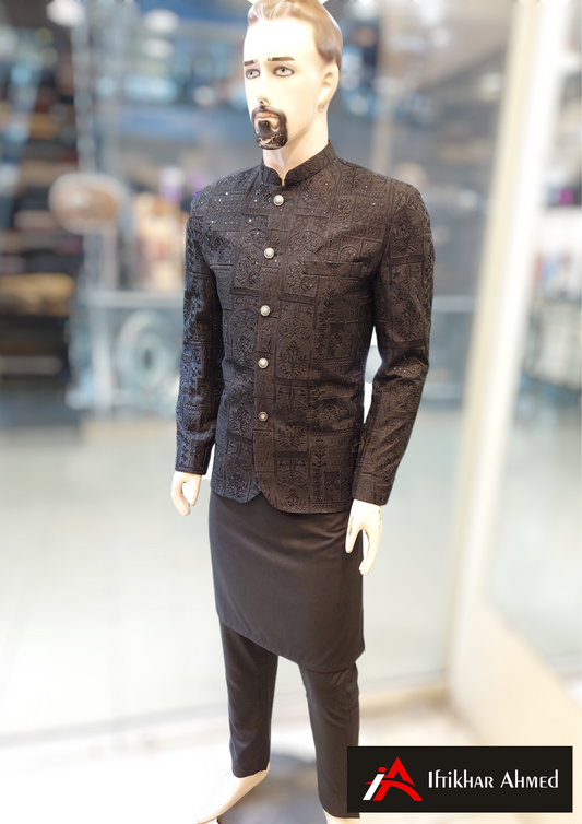 Black Prince Coat, Embroidery Pattern - Masoori Fabric
