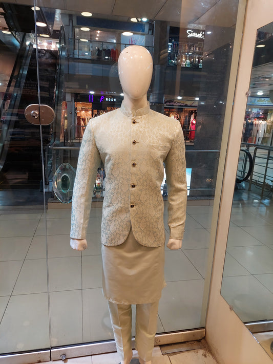 Sea Green with light golden Embose Prince Coat - Atlas Zaari