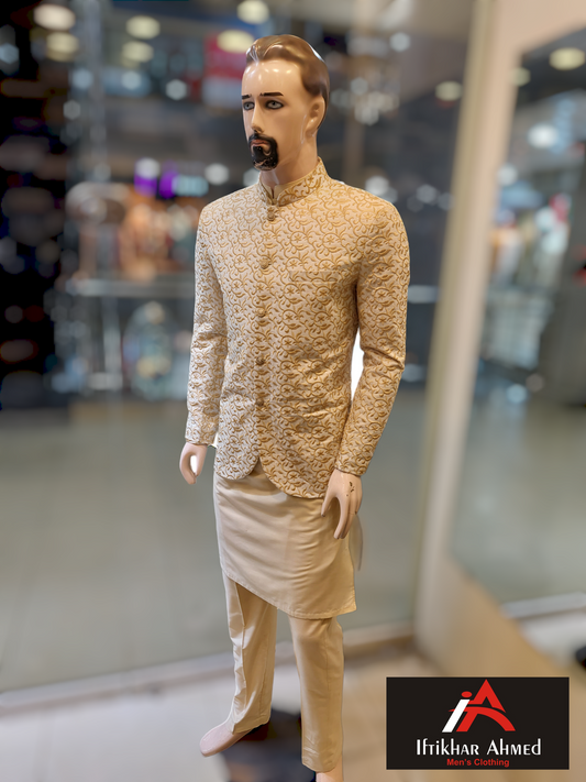 White Prince Coat, Embroidery Pattern - Masoori Fabric