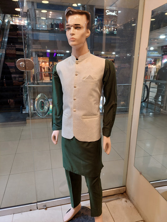 White with white embose Waist Coat – Jamawar