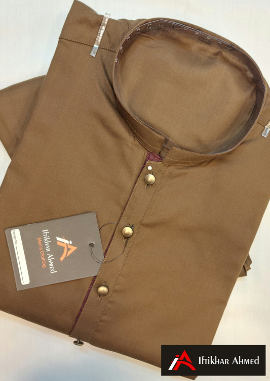 Wood Brown - Kurta Pajama - Wash n Wear Fabric