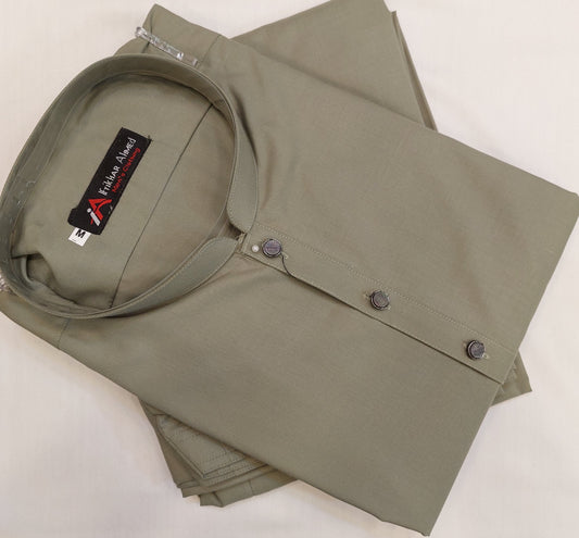 Olive Green - Kameez Shalwar - Wash n Wear Fabric
