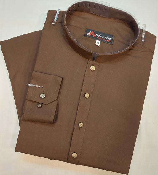 Dark Brown Kameez Shalwar - Wash n Wear Fabric