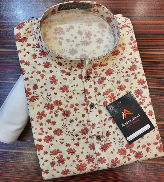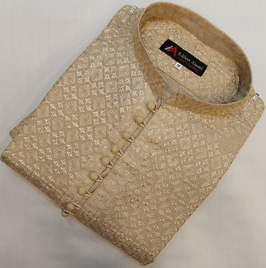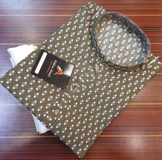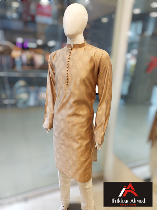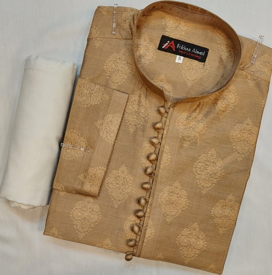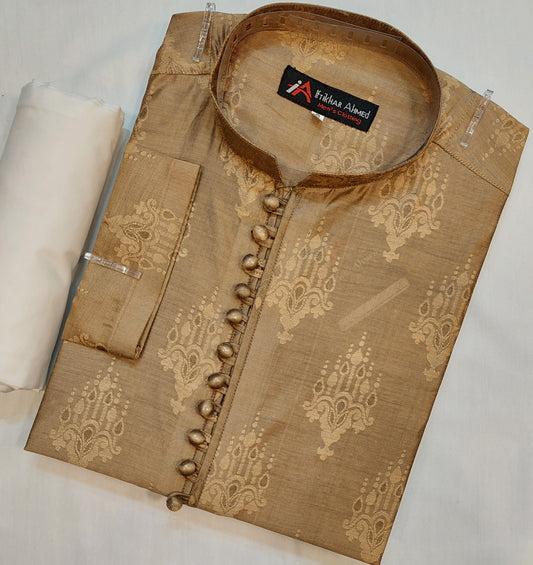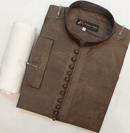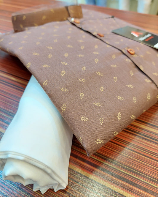 Brown Kurta with Leaf Pattern - Cotton Embose