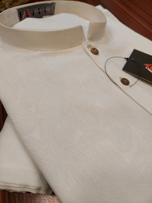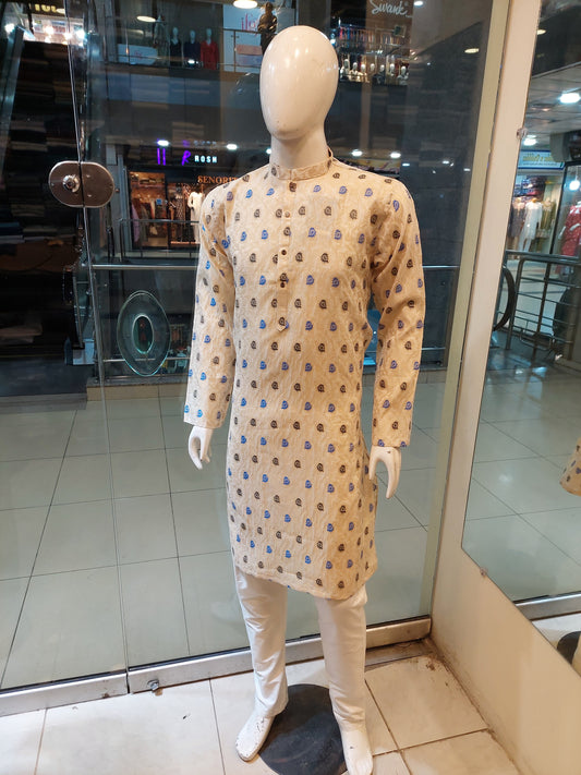 Off-White Kurta Pajama - Cotton Jaykart Embose