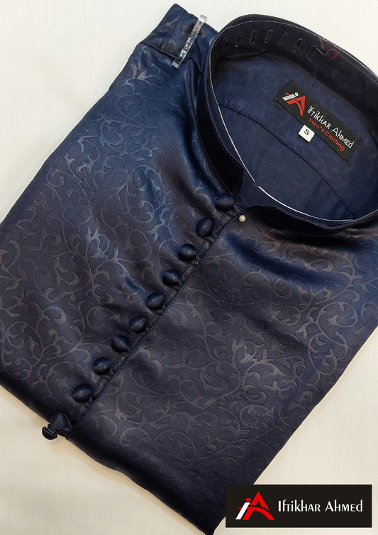 Navy Blue - Kurta - Jaykart Silk Emboss