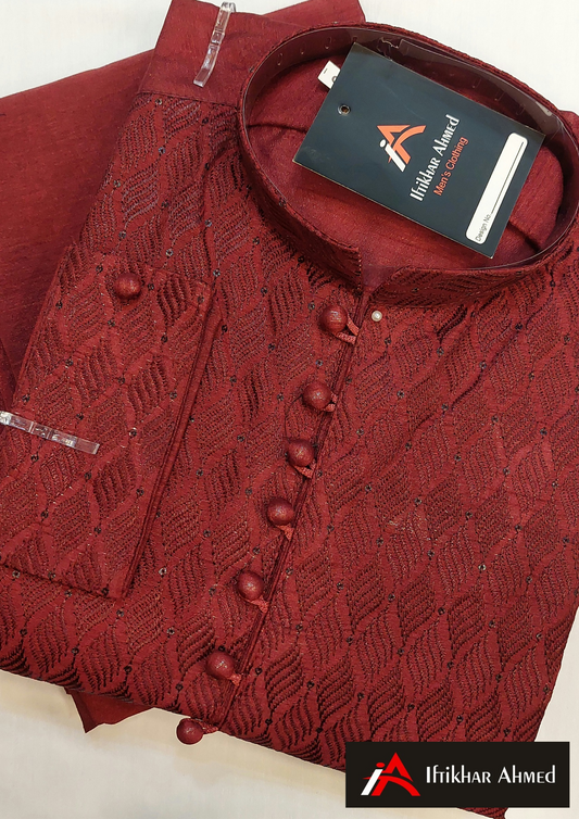 Maroon - Kurta Pajama - Masoori Sequence Work- Raw Silk Fabric