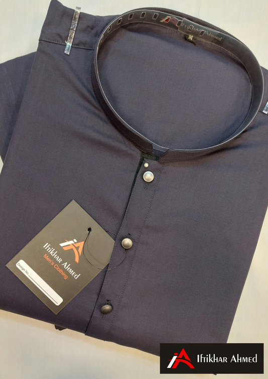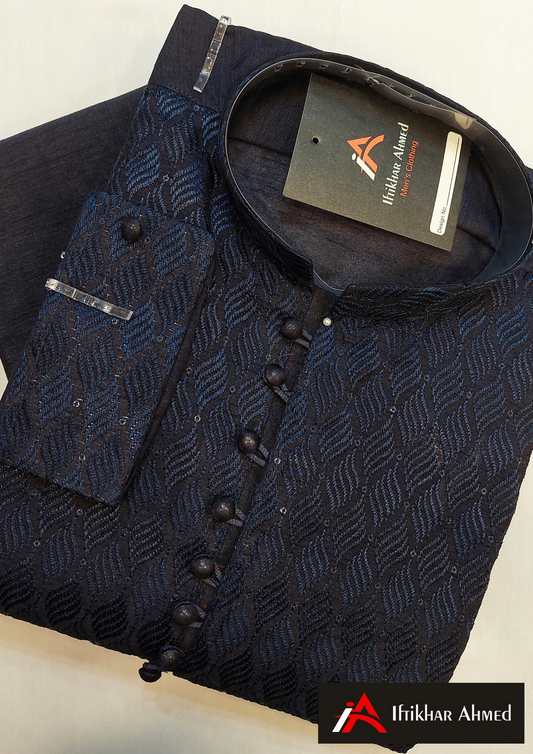 Navy Blue - Kurta Pajama - Masoori Sequence Work- Raw Silk Fabric