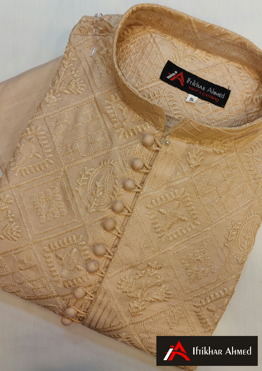 Light Peach - Kurta Pajama - Masoori Work - Cotton Silk Fabric