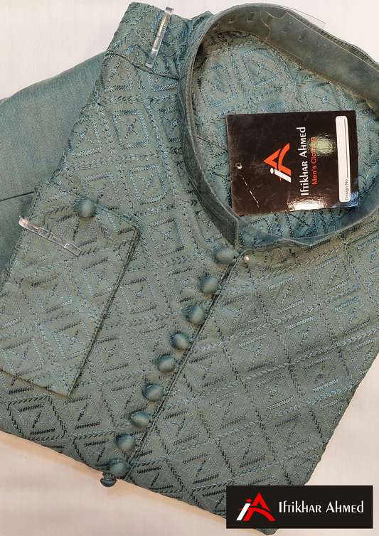 Sea Green Kurta Pajama - Masoori Work- Cotton Silk Fabric