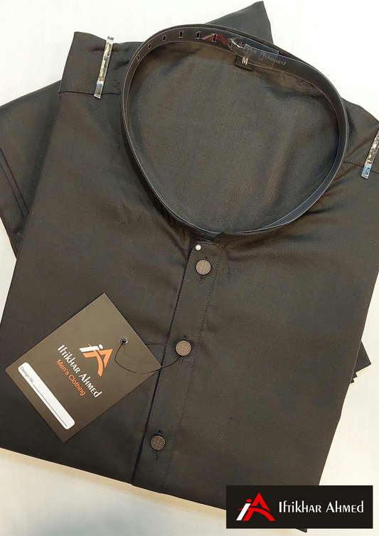 Black Kurta Pajama - Masoori Sequence Work- Raw Silk Fabric