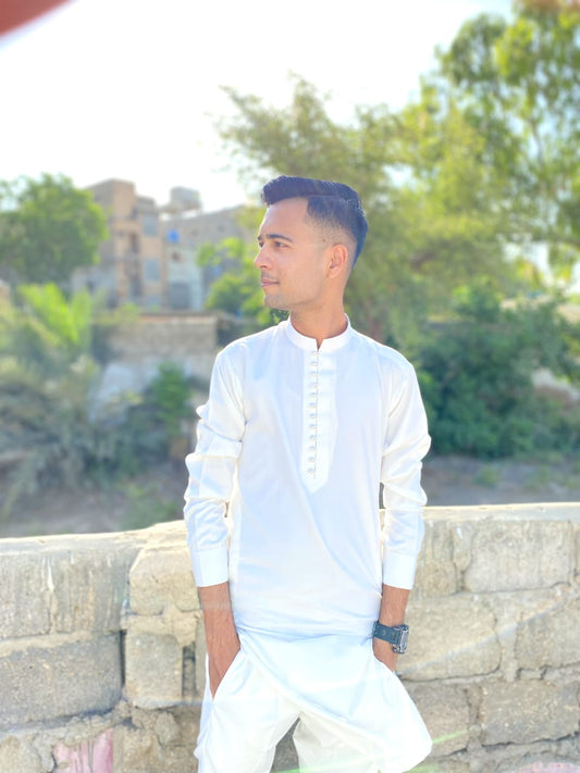 Milky White Kurta Pajama - Bhoski Fabric