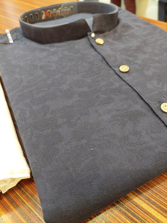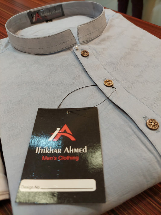 Slate Blue Kurta - Cotton Embose Fabric