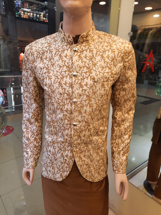 Light Golden Prince Coat, Embroidery Pattern - Masoori Fabric